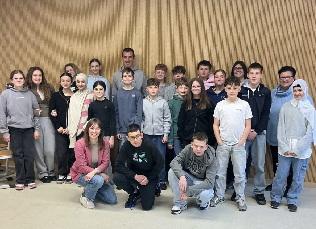 In einem Stuhlkreis beantwortete er geduldig die Fragen der Schülerinnen und Schüler und erzählte offen von seiner Karriere und seinen Erfahrungen im Fußball. Auch er selbst stellte einige Fragen, um die Klasse besser kennenzulernen.