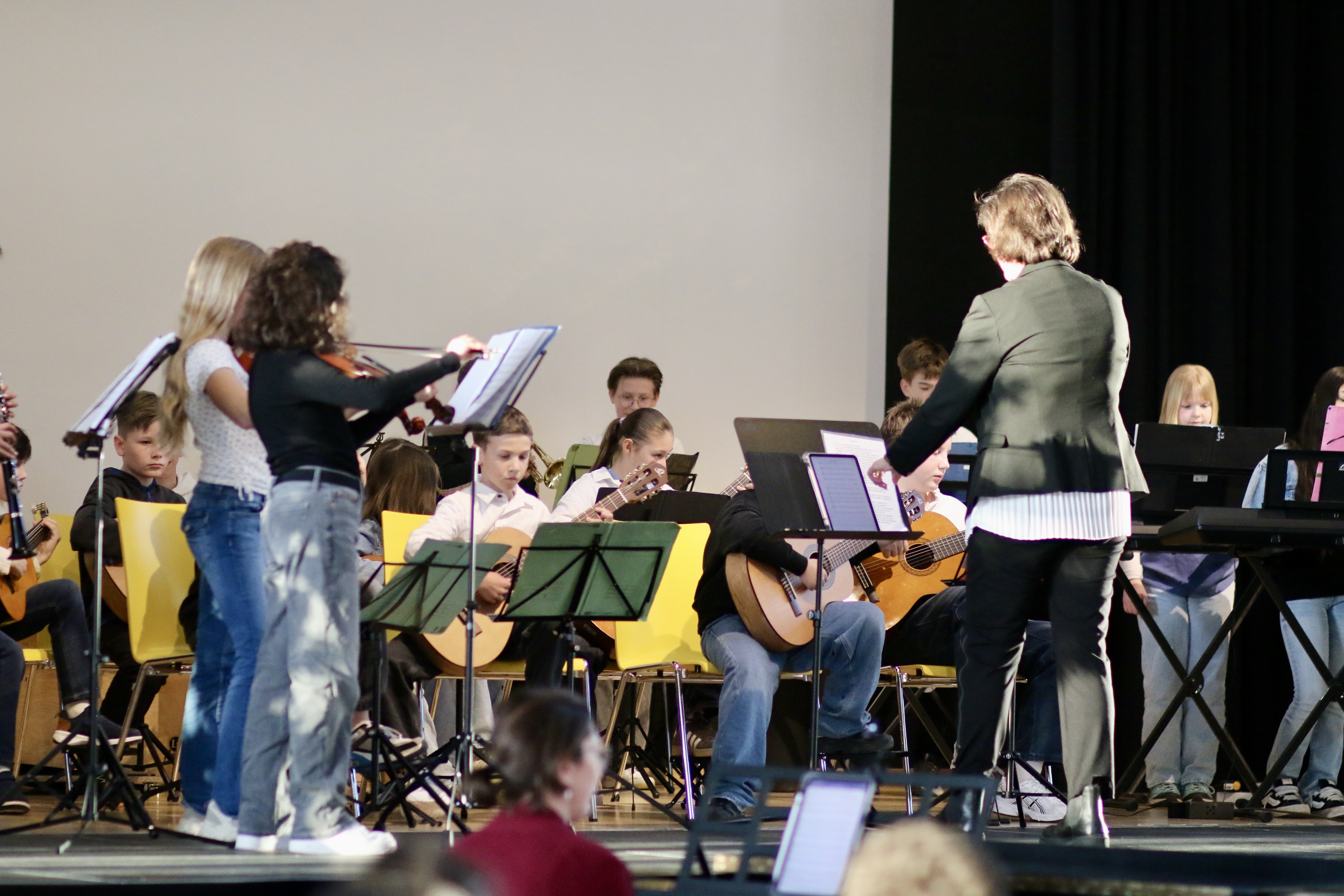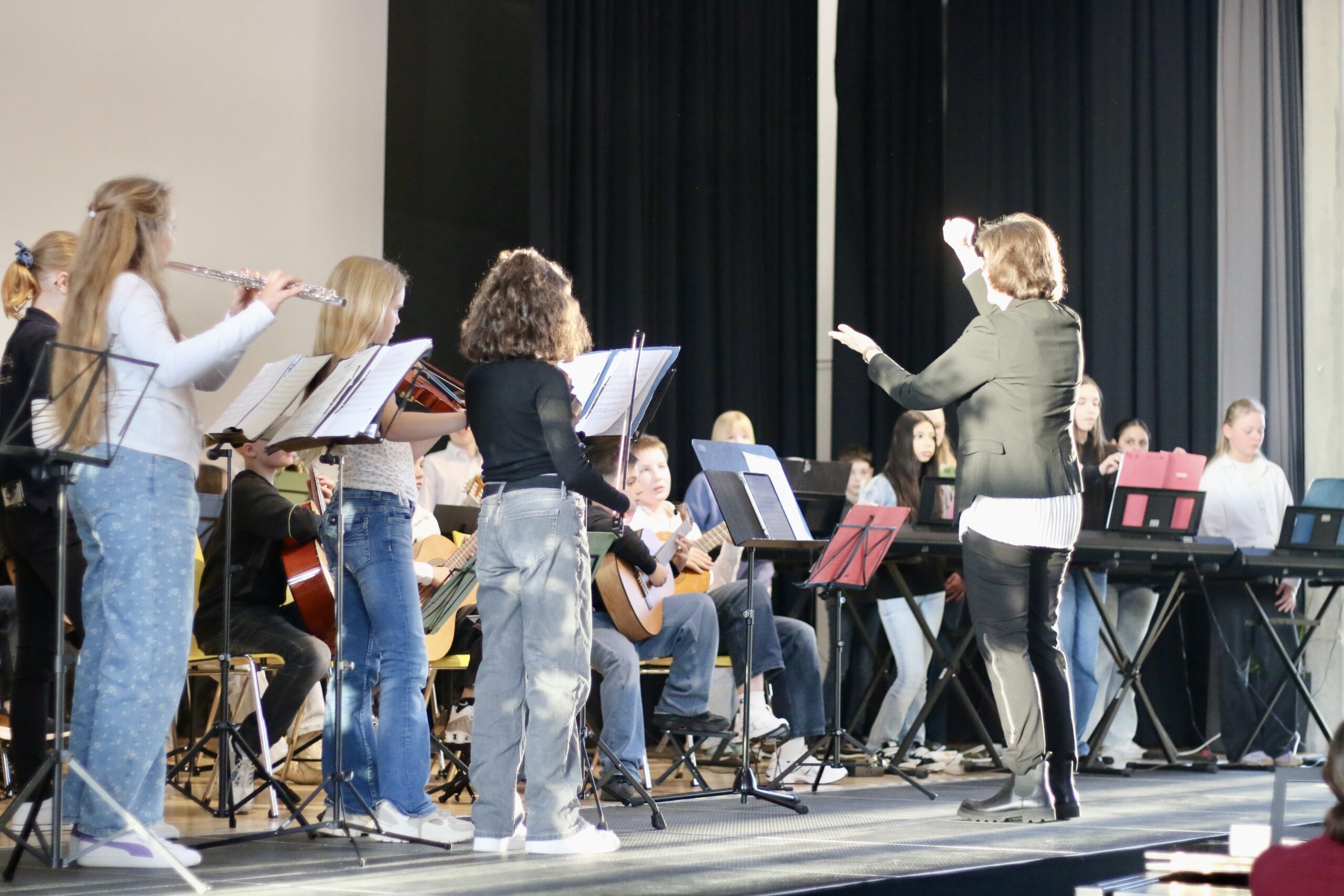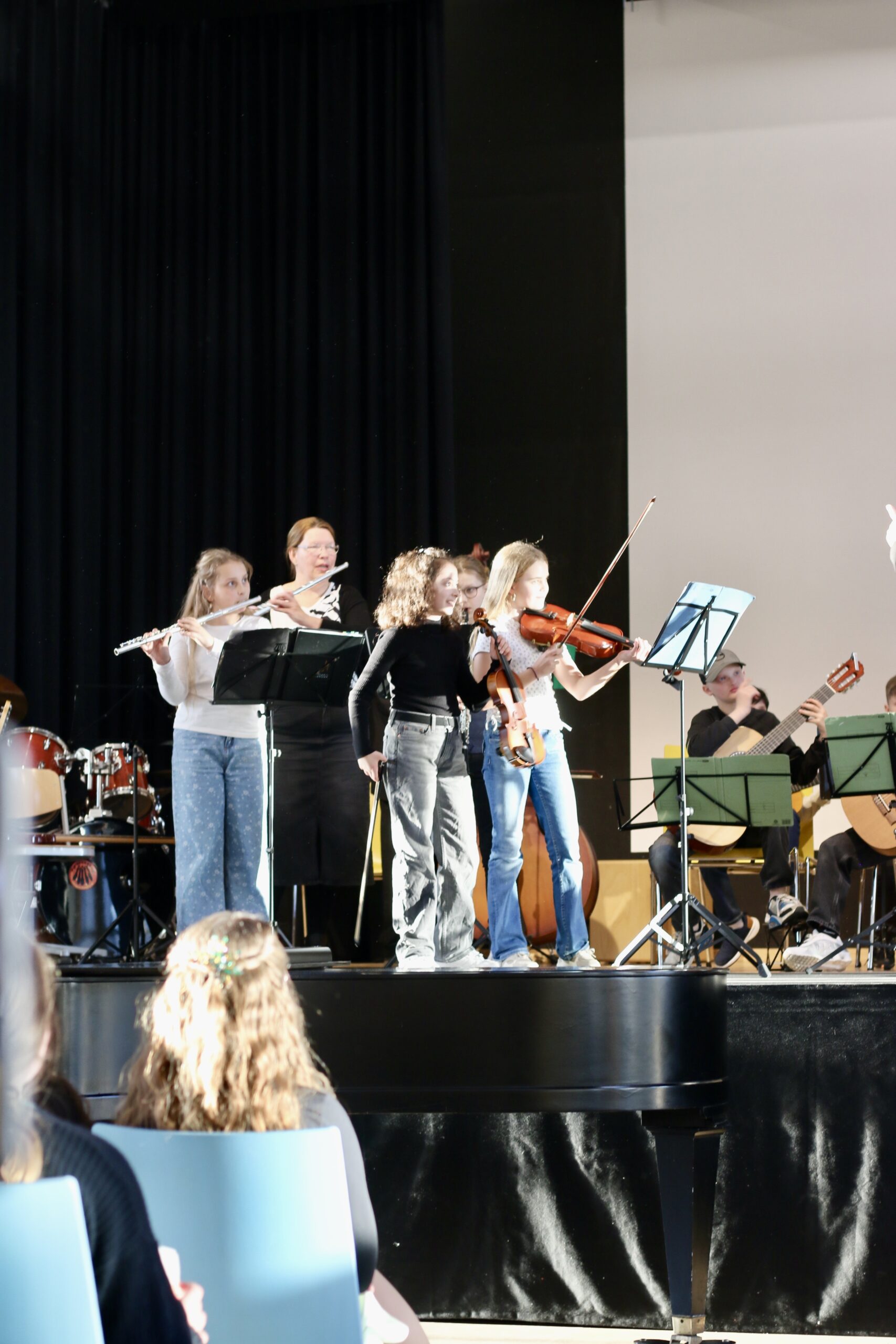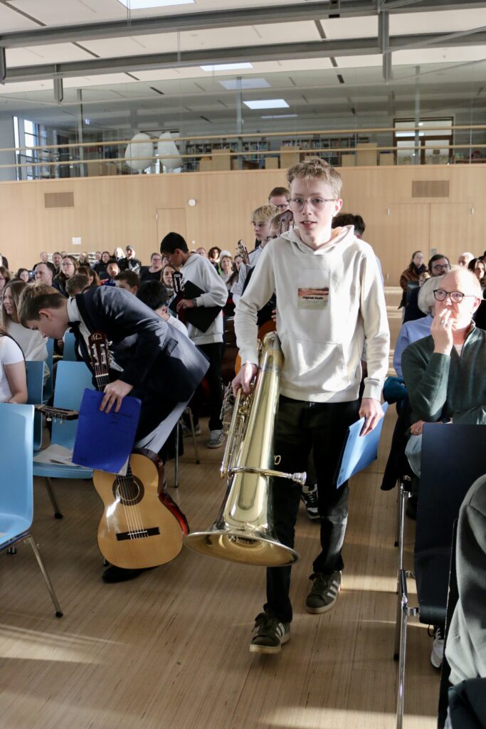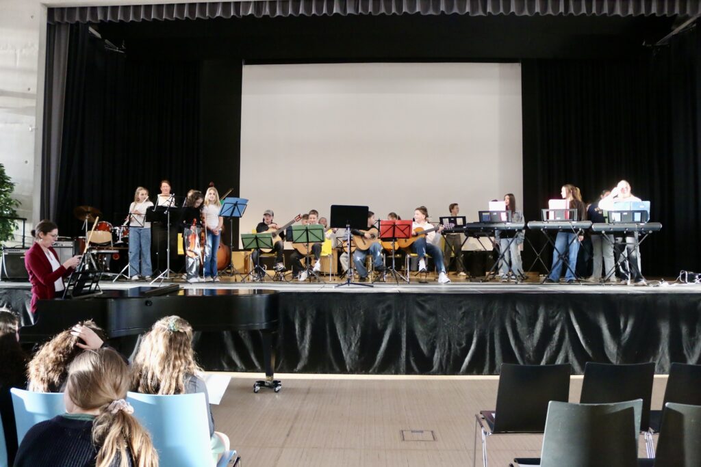 Zu den Höhepunkten des Programms gehörten unter anderem „Freude schöner Götterfunken“, „Blowin’ in the Wind“, das „Star Wars Main Theme“ und „Howls Moving Castle“. Ein besonderer Moment war zudem der gemeinsame Auftritt der Klassen 6.1 und 7.1 mit „We Will Rock You“.
