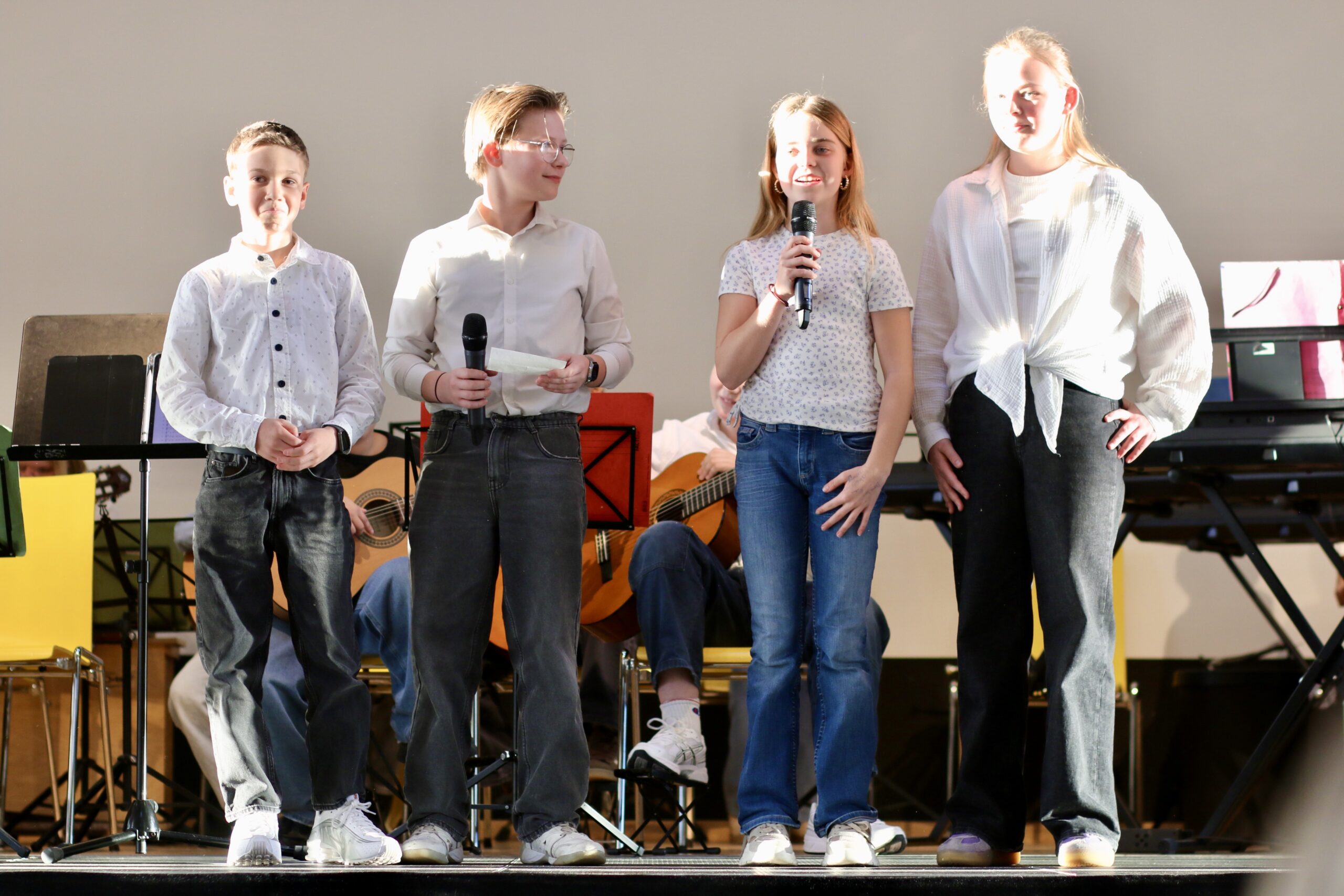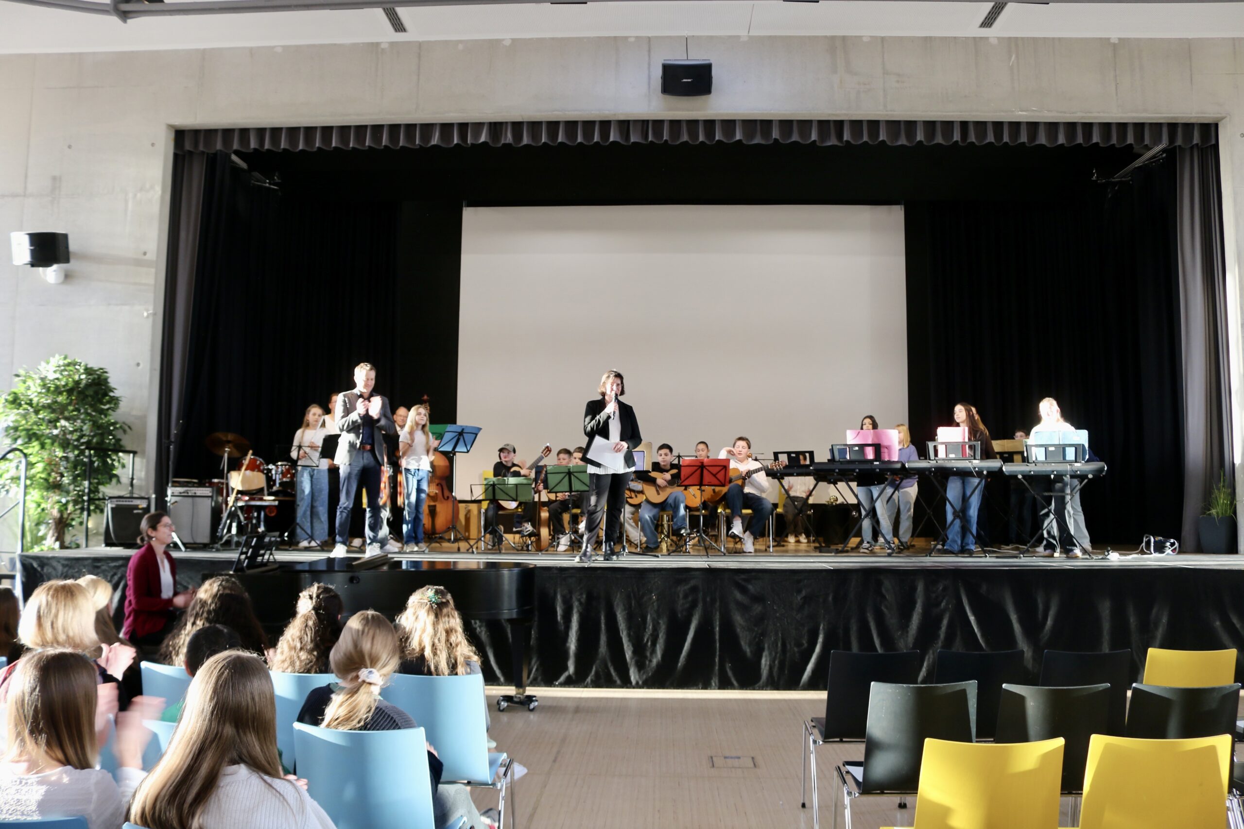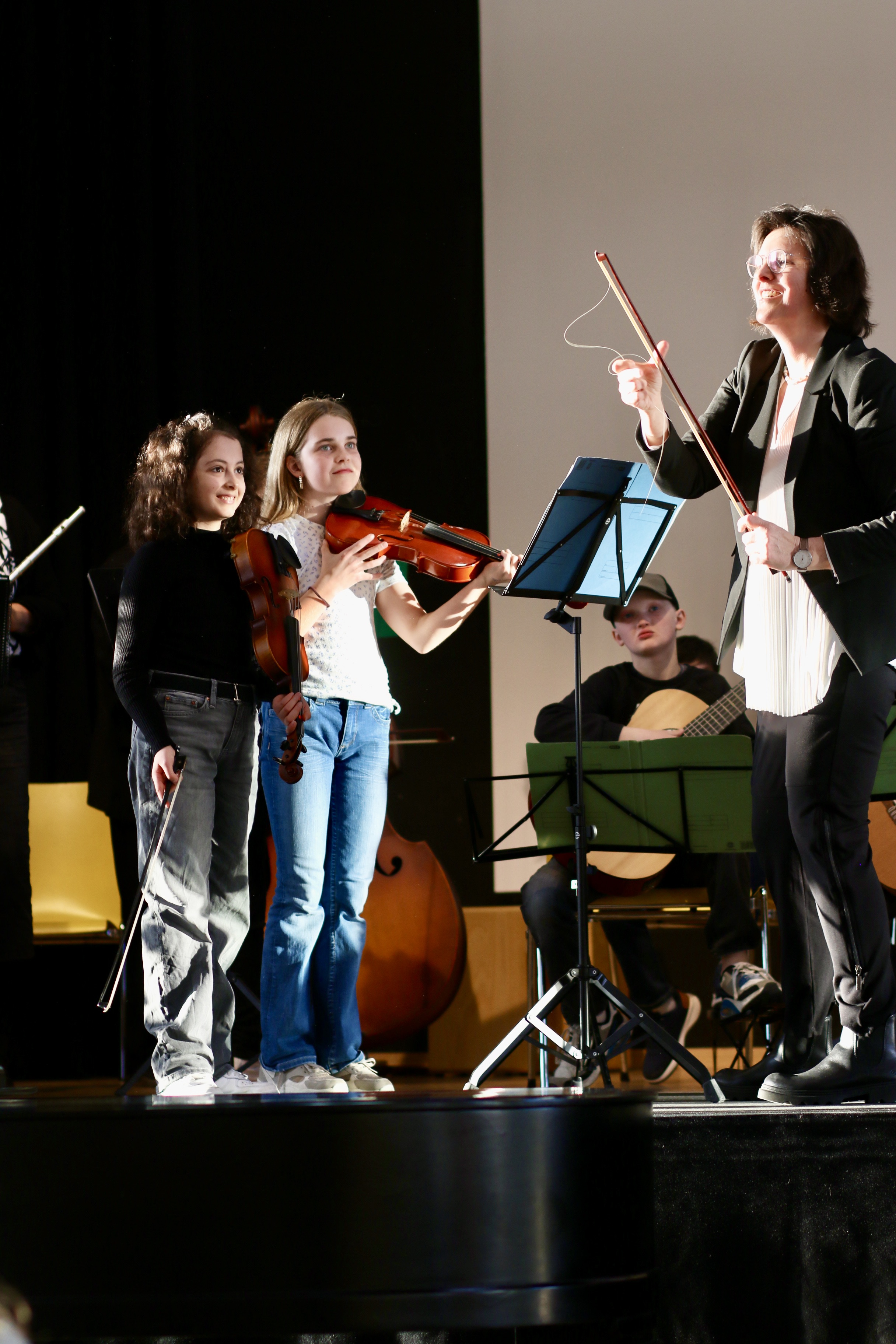 Zu den Höhepunkten des Programms gehörten unter anderem „Freude schöner Götterfunken“, „Blowin’ in the Wind“, das „Star Wars Main Theme“ und „Howls Moving Castle“. Ein besonderer Moment war zudem der gemeinsame Auftritt der Klassen 6.1 und 7.1 mit „We Will Rock You“.