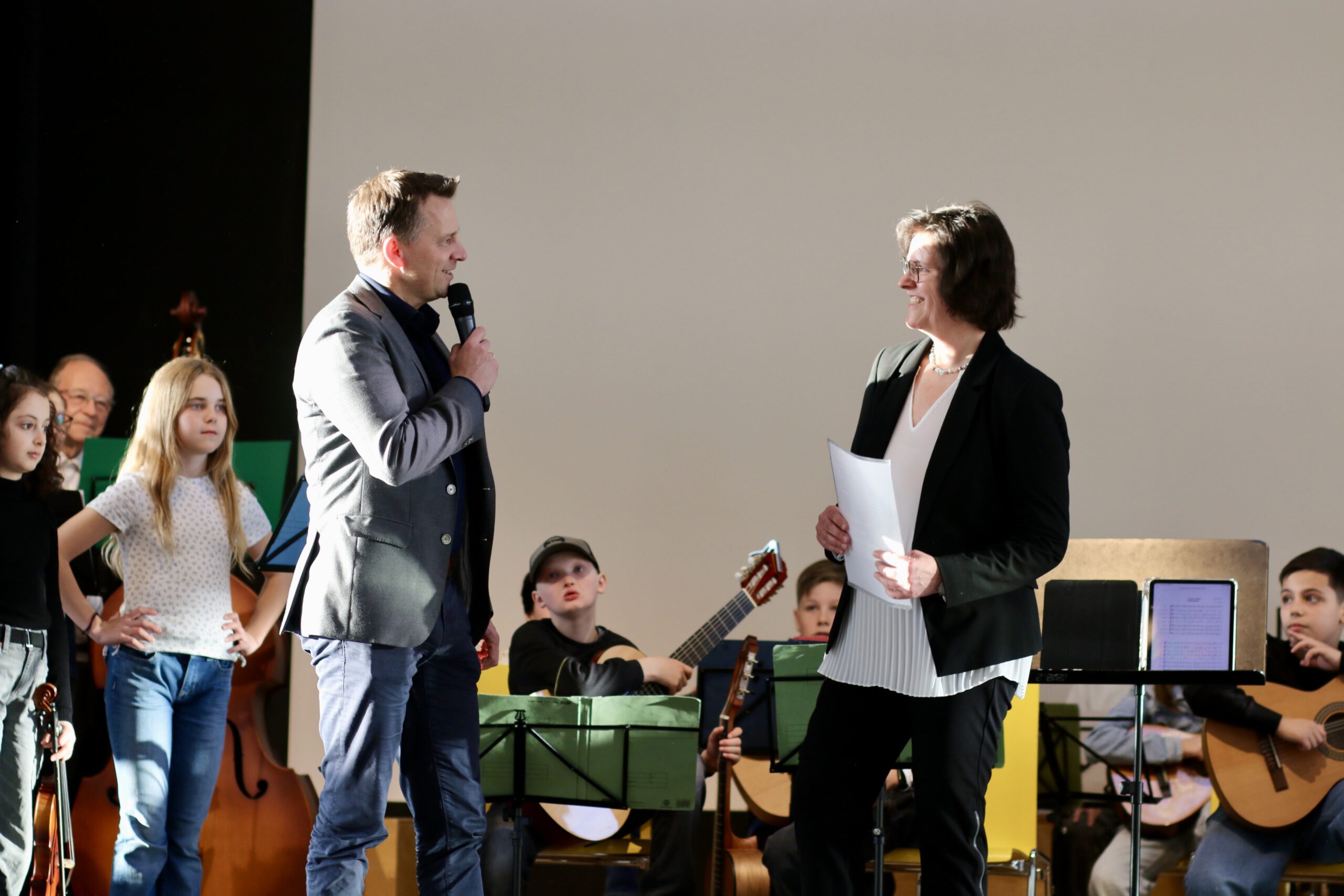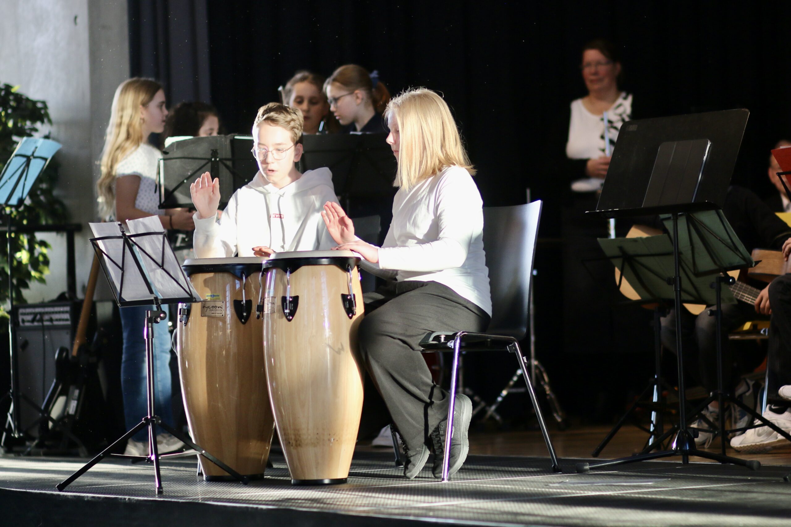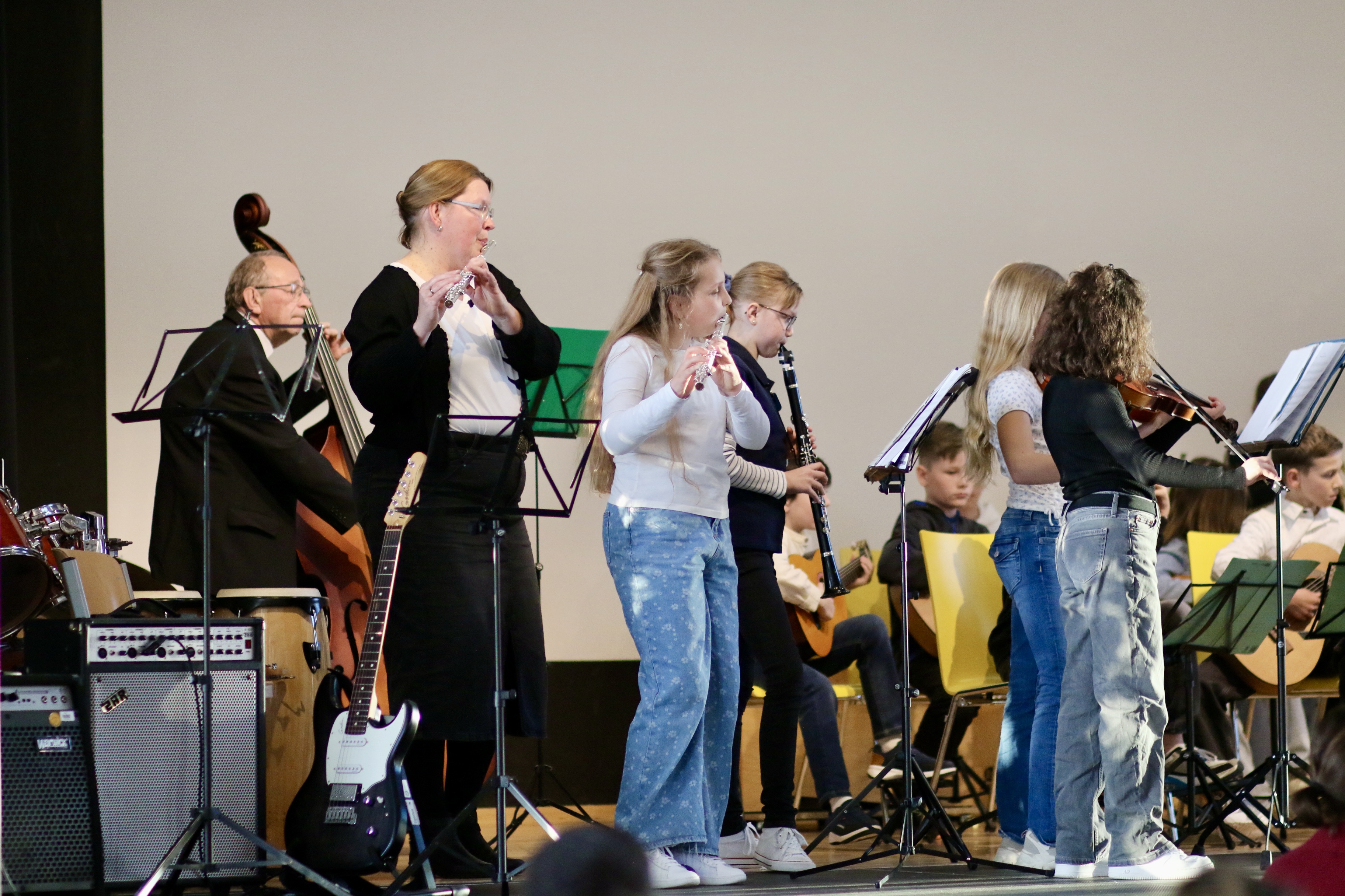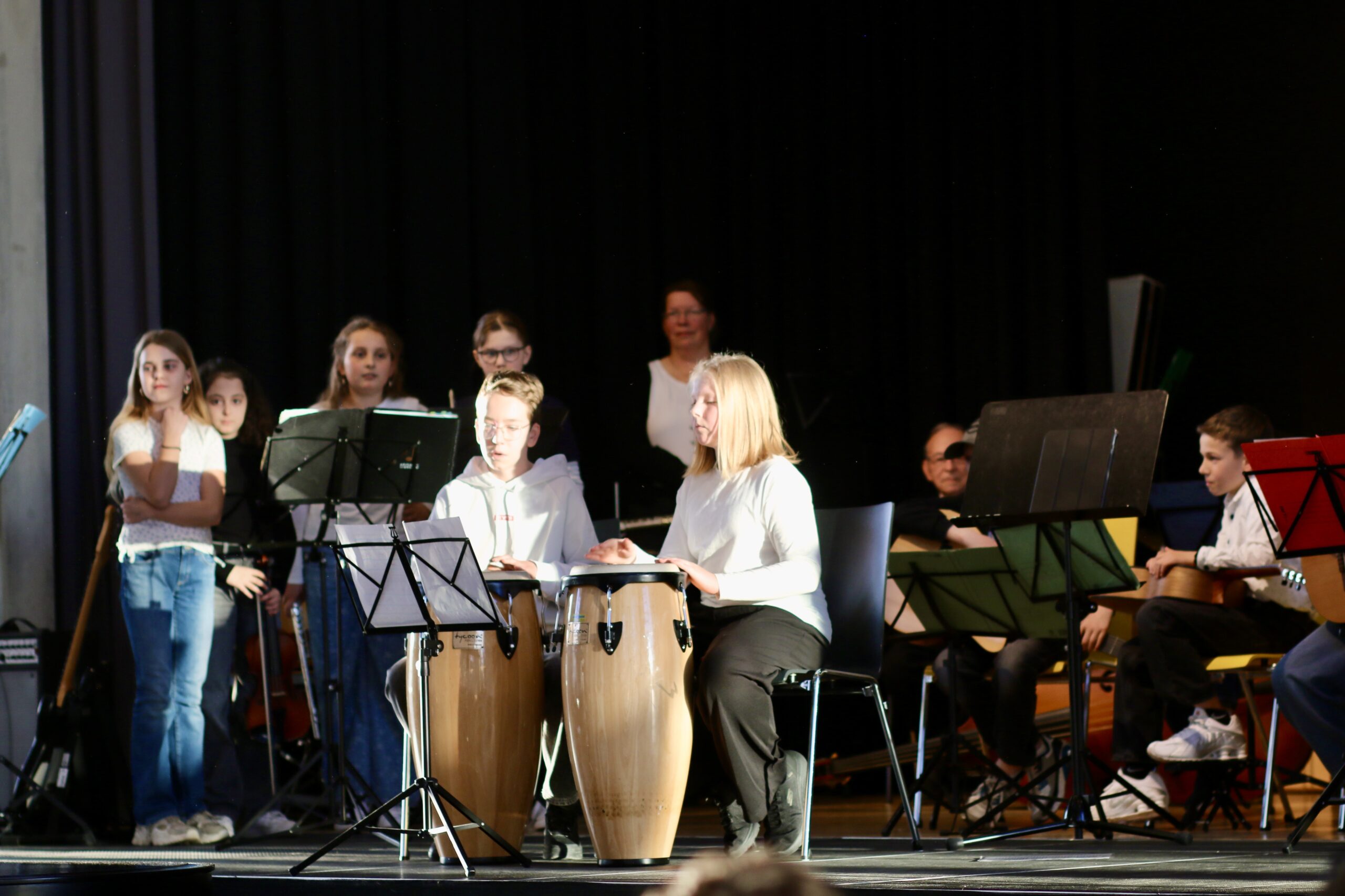 Zu den Höhepunkten des Programms gehörten unter anderem „Freude schöner Götterfunken“, „Blowin’ in the Wind“, das „Star Wars Main Theme“ und „Howls Moving Castle“. Ein besonderer Moment war zudem der gemeinsame Auftritt der Klassen 6.1 und 7.1 mit „We Will Rock You“.