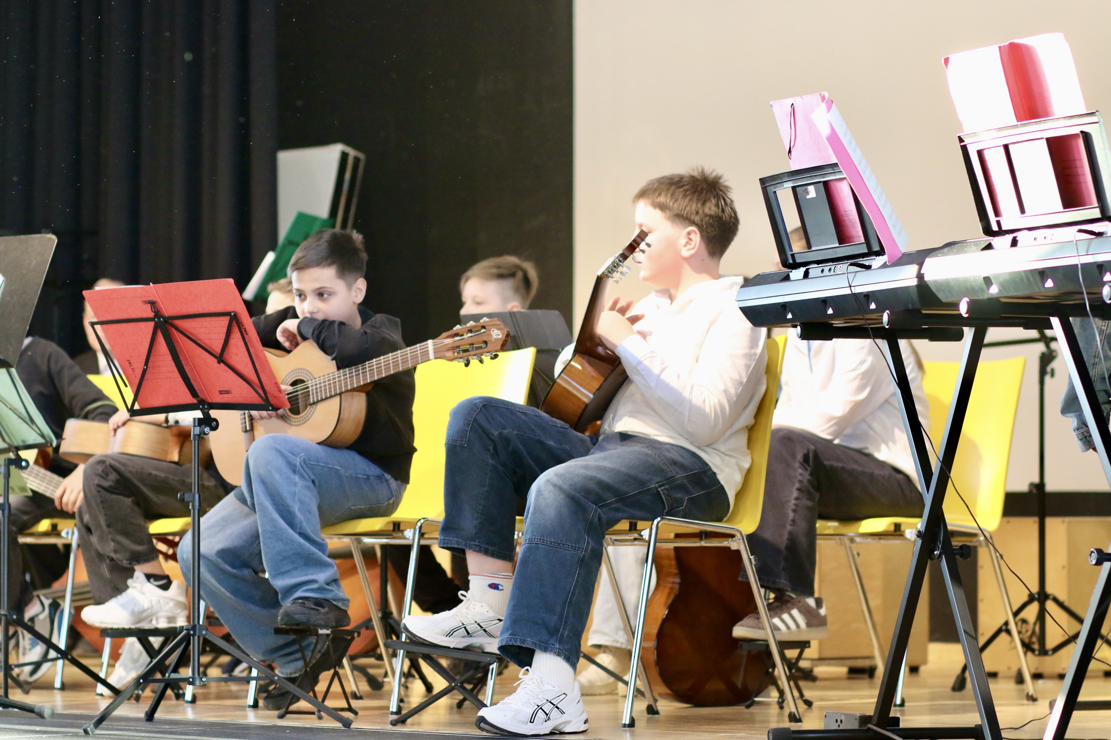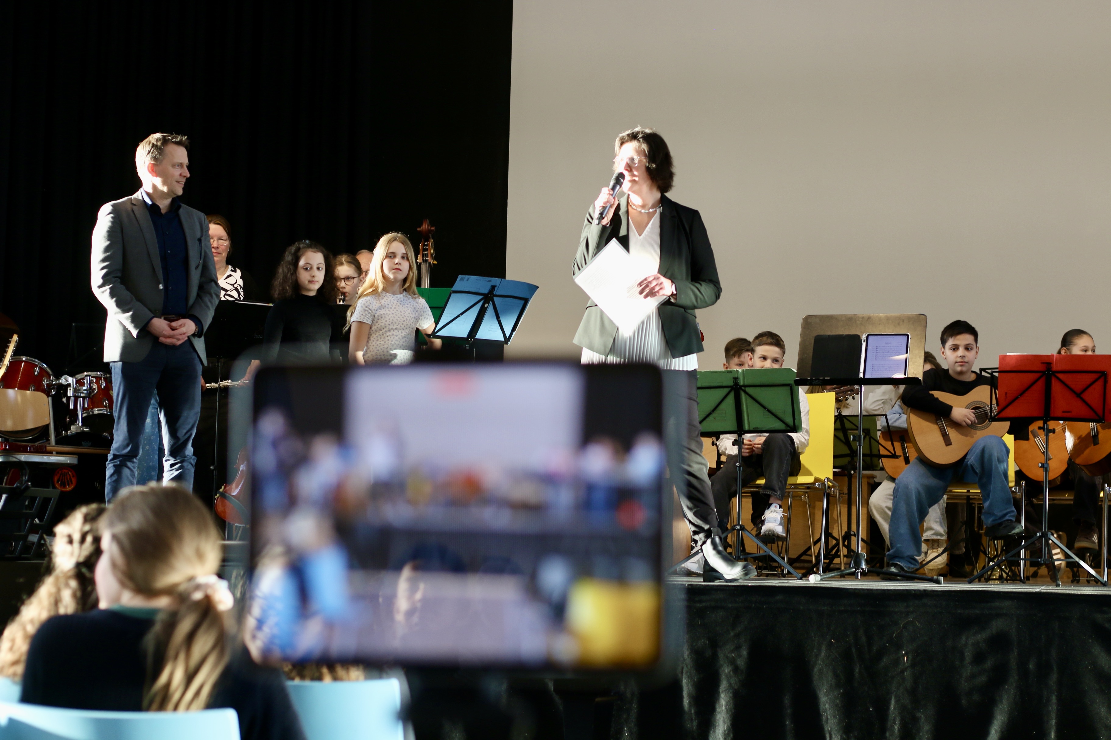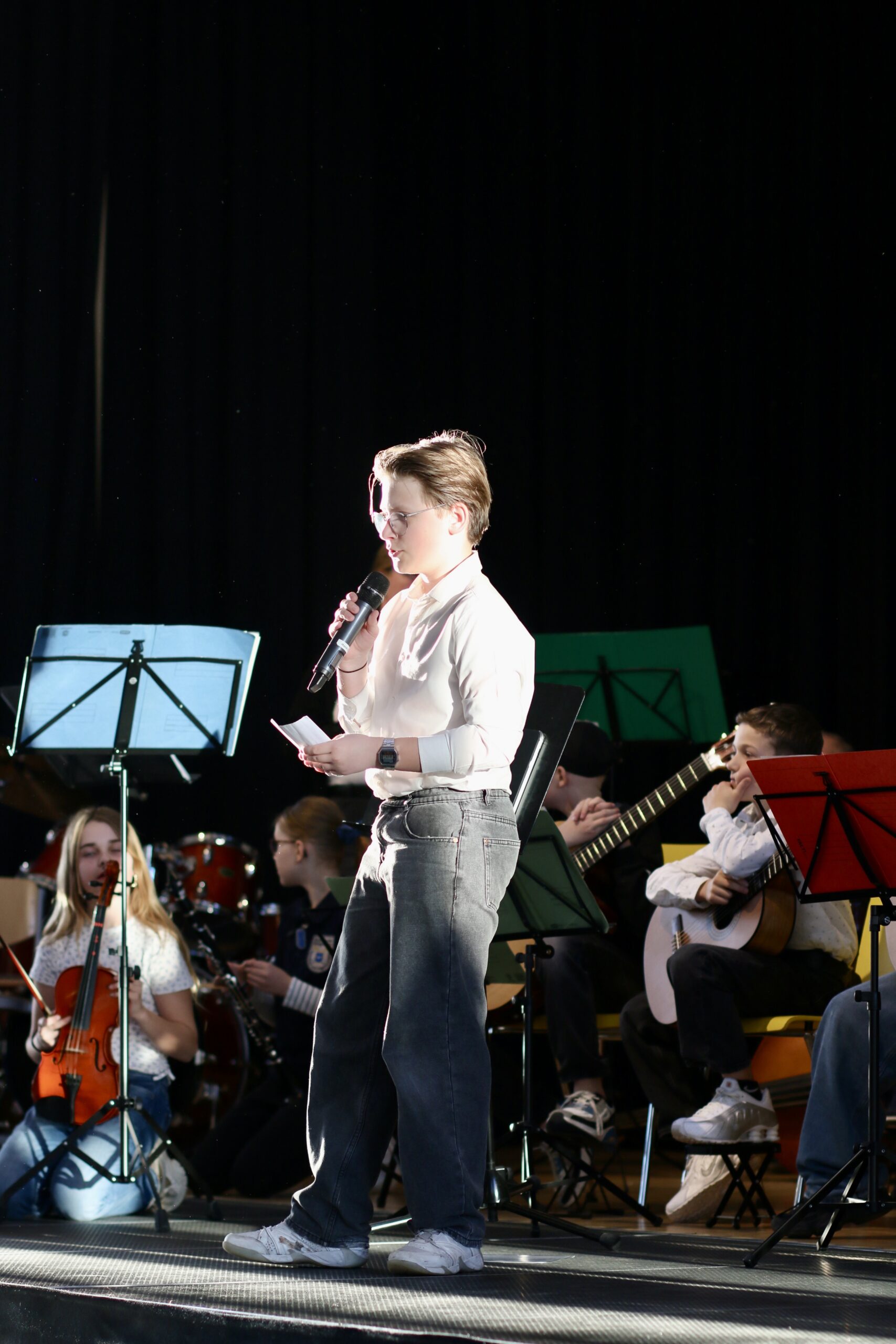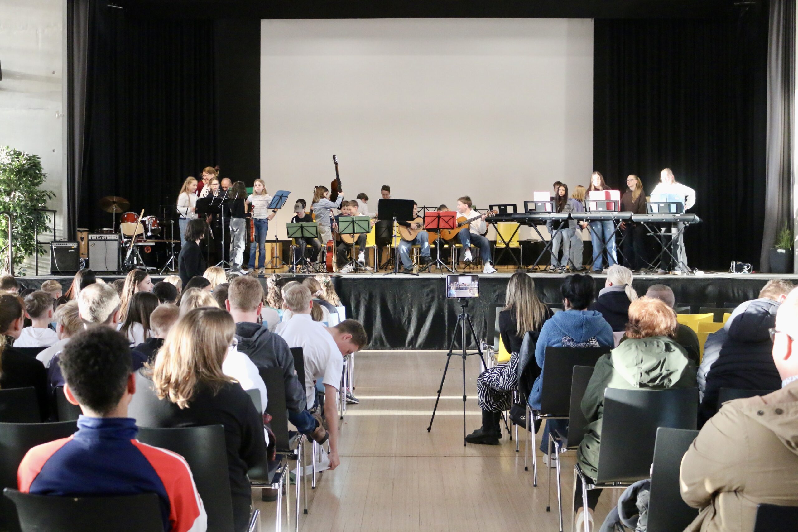 Am 26.03.2026 fand im Forum unser diesjähriges Schulkonzert statt. Schülerinnen und Schüler der Klassen 5.1, 6.1 und 7.1 sowie die Schulband gestalteten einen abwechslungsreichen Abend mit klassischer Musik, Filmmusik sowie Pop- und Rocktiteln. Das Konzert zeigte eindrucksvoll, mit wie viel Können, Einsatz und Freude musiziert wird.