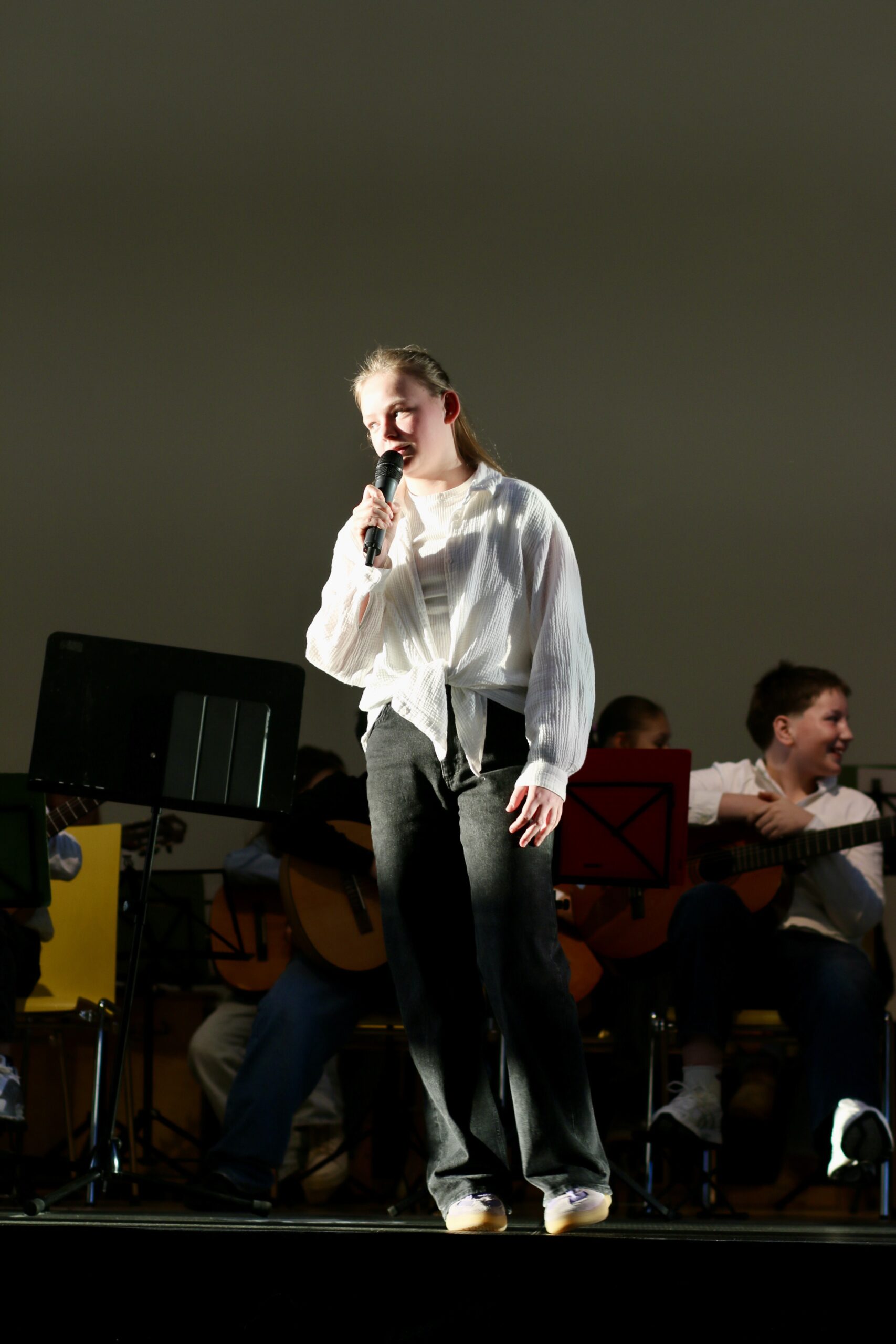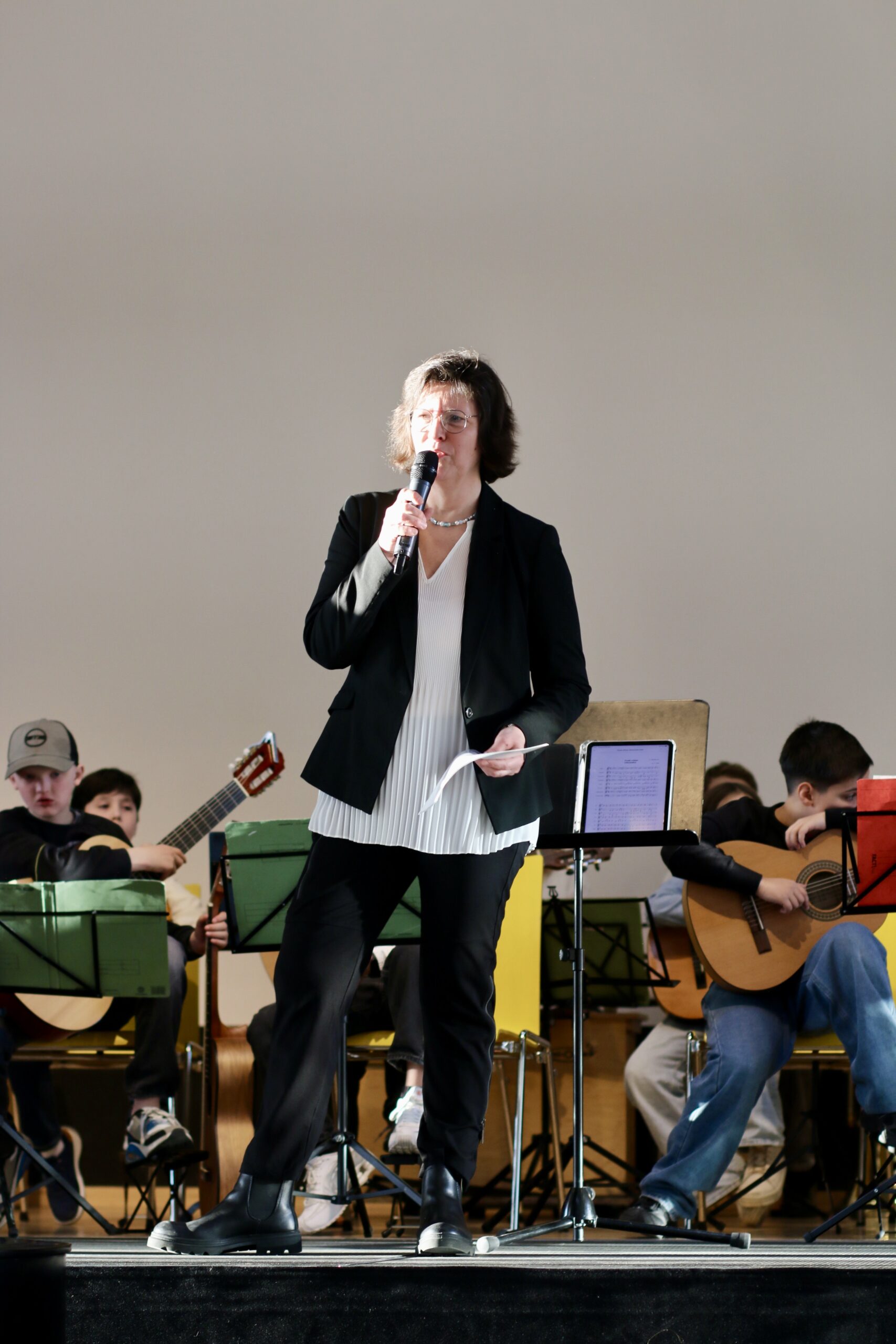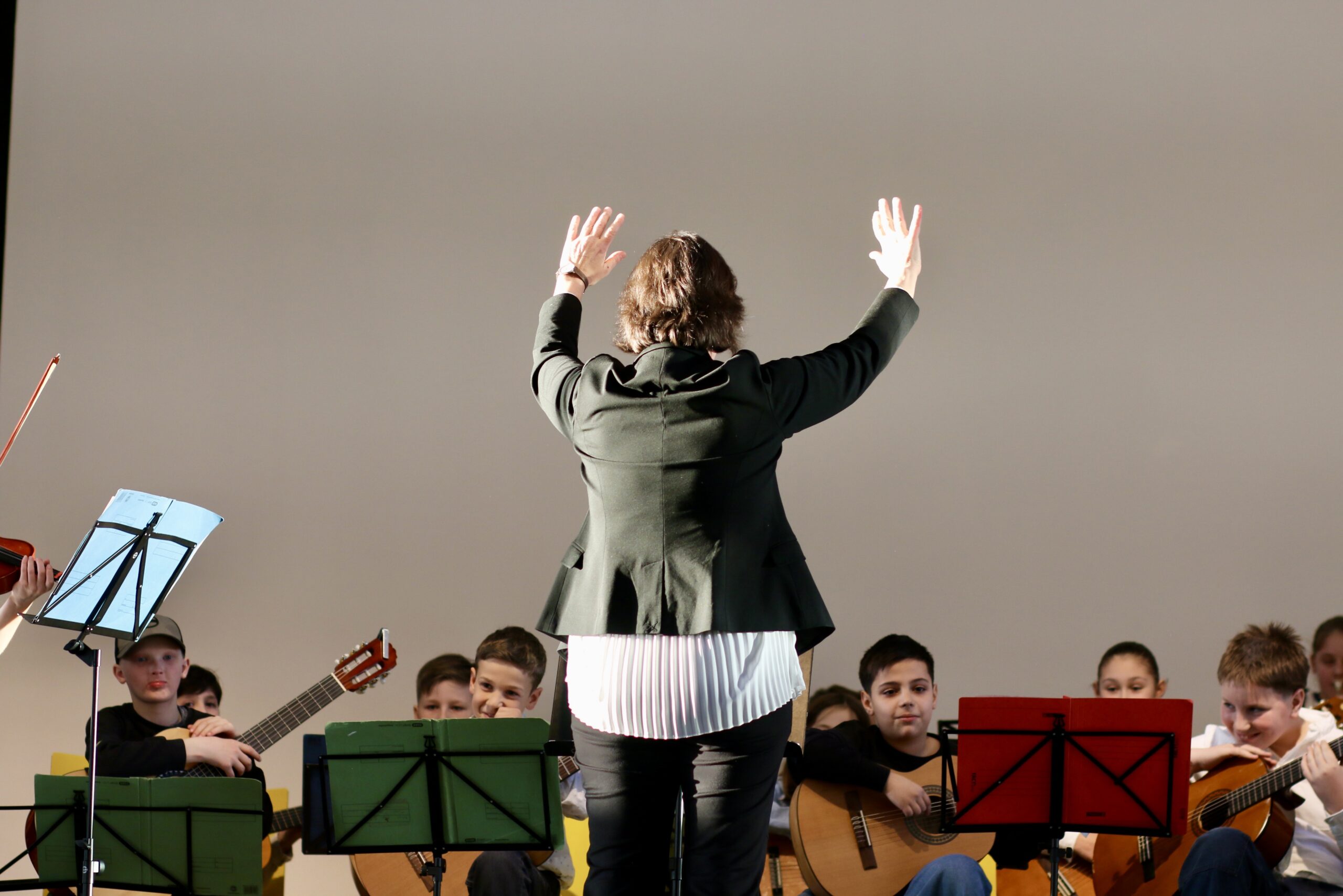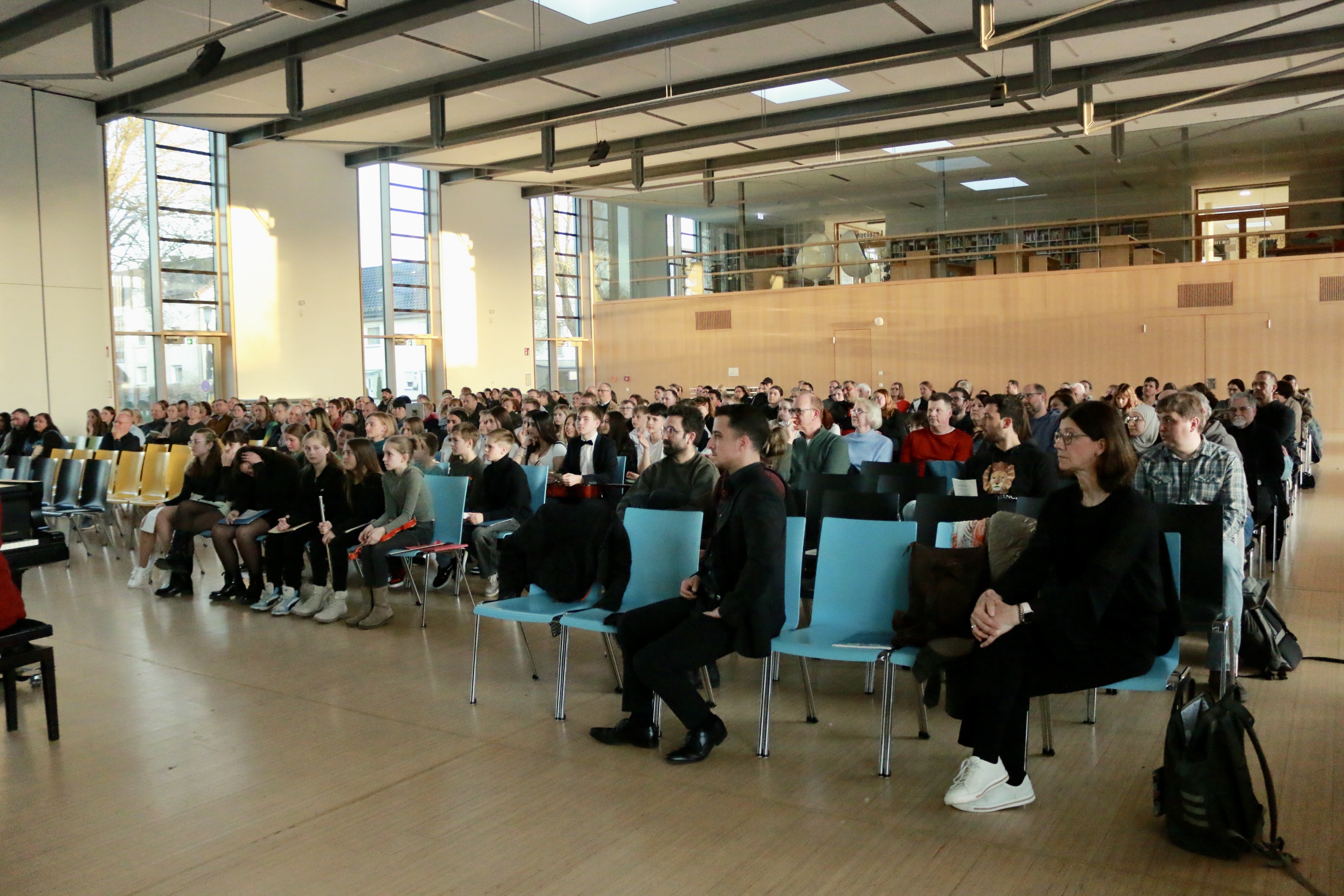 Auch die solistischen Beiträge setzten besondere Akzente. Exemplarisch standen dafür ein russisches Volkslied aus der 5.1, „Toccata und Fuge in d-Moll“ aus der 6.1 sowie „Believer“ aus der 7.1. Für einen schwungvollen Abschluss sorgte die Schulband mit „Lemon Tree“, „I Will Survive“ und „Eye of the Tiger“.